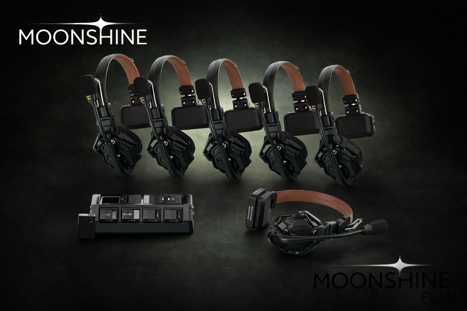 6-person full-duplex wireless comms system with no belt packs or base station required. Each headset connects directly for fast, clean setup.