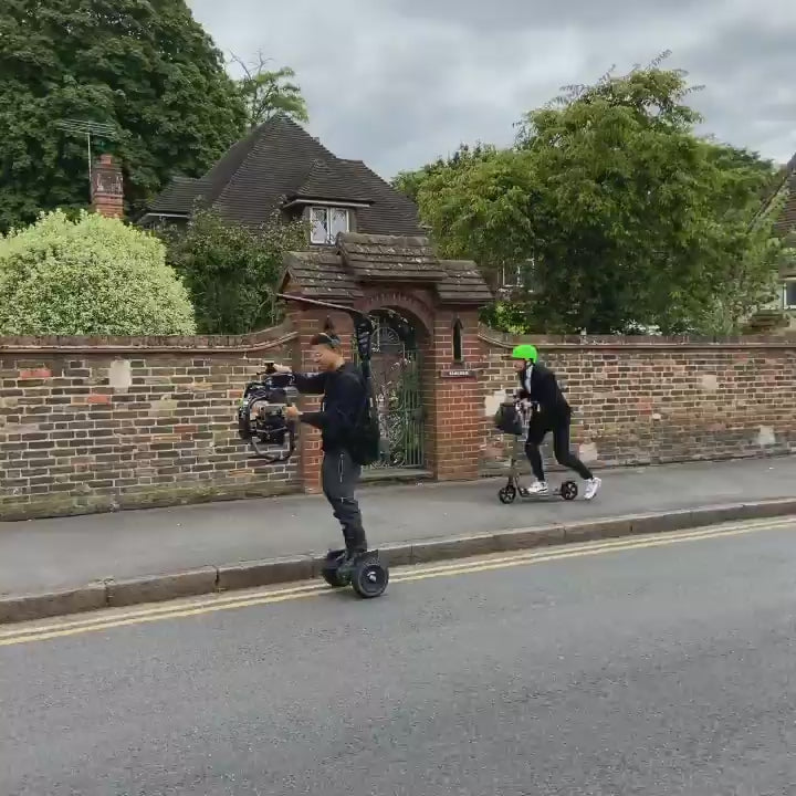 Our Segway Ninebot S2 is perfect for fast-paced film sets and tracking shots. Equipped with off-road tyres and a custom speed hack, this unit is ready to tackle rough terrain and assist in filming as a tracking vehicle solution.
